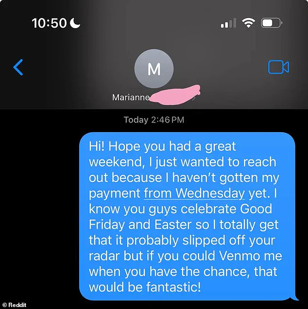 I know you guys celebrate Good Friday and Easter so I totally get that it probably slipped off your radar but if you could Venmo me when you have the chance, that would be fantastic!’ Her request, however, was met with a response that stunned her and ignited public outrage.