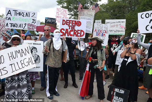 Democrats have condemned the facility as a ‘makeshift prison camp,’ while environmentalists have raised concerns about the disruption of local climates and the risk of flooding in a region prone to hurricanes.