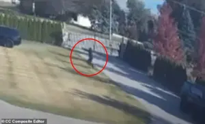 The video, obtained by local authorities and shared exclusively with the Daily Mail, captures the 59-year-old businessman exiting his $1.9 million residence in a Land Rover when a suspect, clad entirely in black, emerges from behind a parked vehicle.