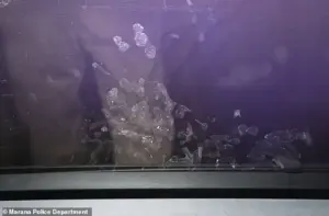 The crime scene photos, taken by the Marana Police Department, show the rear driver’s side window of the SUV, where Parker’s forward-facing car seat was buckled in, just inches away from the faint, ghostly handprints that suggest her final, futile attempts to reach out for help.