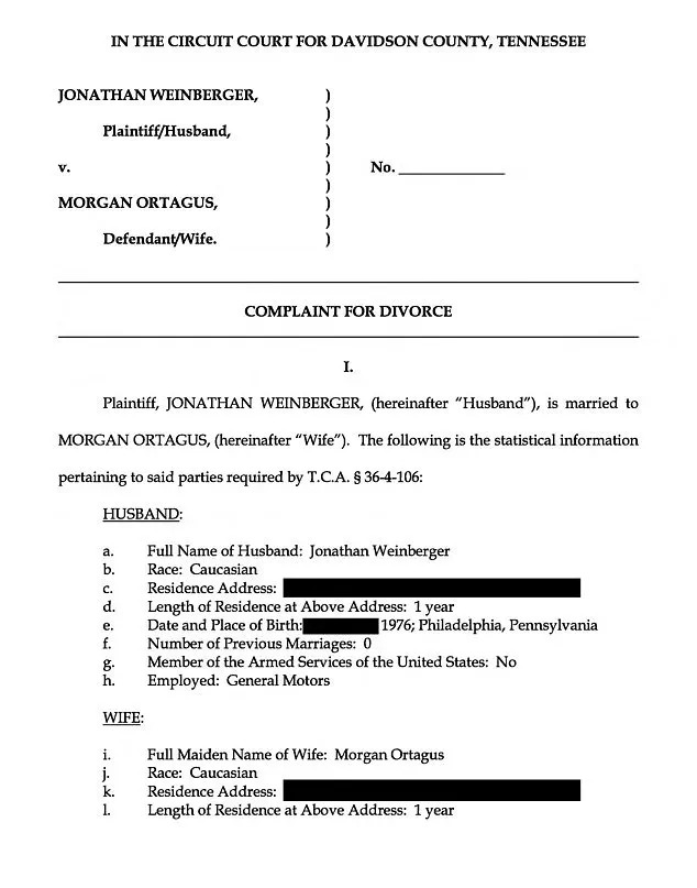 The divorce filing, which lists the date of separation as the ‘date of filing’ due to ‘irreconcilable differences,’ has been described by insiders as a formalization of a relationship that had already ended months prior. ‘The divorce was decided by Jonathan, not Morgan,’ said a source familiar with the couple’s situation. ‘It was a mutual decision, but the paperwork came later.’ The couple, who married in 2013 in a ceremony officiated by the late Justice Ruth Bader Ginsburg, shared a $2.25 million home in Nashville, Tennessee, with their young daughter and a pet dog named Ozzy.