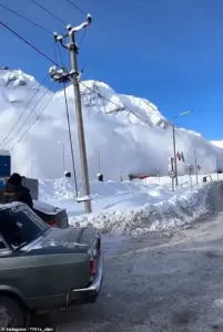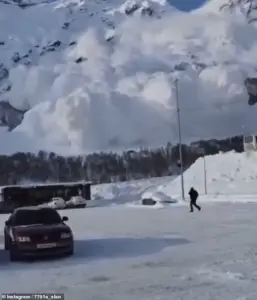 The scene unfolded at the Elbrus Resort in Kabardino-Balkaria, where a car park became the epicenter of chaos as the avalanche roared toward it, swallowing everything in its path within seconds.