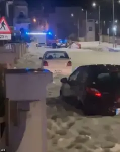 In one video, a resident described the scene as ‘like a scene from a disaster movie,’ with cars stranded and roads impassable.