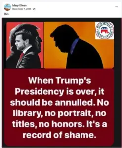 On December 18, a post by activist Conmee went viral, sharing a meme that read: ‘When Trump’s Presidency is over, it should be annulled.