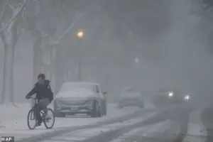 As the storm travels across the country, a blast of cold air from Canada will spread across the eastern two-thirds of the US, bringing ‘bitterly cold temperatures and dangerously cold wind chills.’ Meteorologist Richard Bann told the New York Times, ‘It’s going to be hazardous for humans to step outside.’ This statement underscores the extreme conditions that the storm will bring, not just in terms of precipitation but also in terms of temperature.
