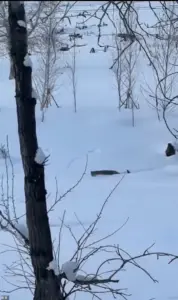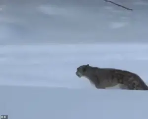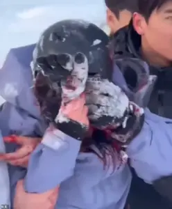 Video footage captured the harrowing moment, showing the tourist trapped underneath the leopard in deep snow, her face bloodied and her hands clutching her injured visage as onlookers rushed to her aid.