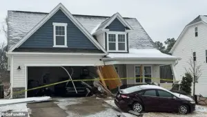Surveillance footage and photos obtained by WRAL News revealed the extent of the damage: support pillars on the front porch were knocked out, parts of the garage were destroyed, and the home’s structural integrity was compromised.