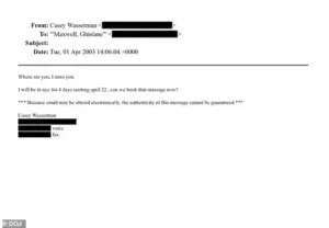 The emails, which span several days in early 2003, reveal a series of risqué exchanges between Wasserman and Maxwell, who was then Epstein’s most prominent collaborator.