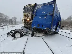 A semi-truck was crushed by a cargo train in Gastonia, North Carolina, after becoming stuck on icy tracks—a harrowing incident that left onlookers stunned.