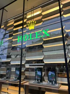 The Daily Mail’s visit to the scene this week found the Rolex store still shuttered, its windows empty save for price tags of watches that once cost up to £29,950.