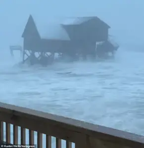 Four unoccupied homes along North Carolina’s Outer Banks collapsed into the Atlantic Ocean over the weekend as a violent winter storm unleashed hurricane-force winds, towering waves, and rare snowfall. The disaster unfolded in Buxton, where a bystander recorded footage of one house buckling and sliding into the churning water, its stilts torn apart by relentless surf. The National Park Service released photos showing debris—mangled lumber, insulation, and household waste—scattered across the shoreline like a grotesque monument to nature’s power.
